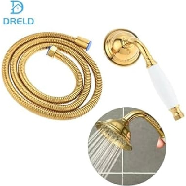 DRELD 2 Pieces Retro Shower Set, 1 x Stainless Steel Hand Shower with 1 x 1.5 m Hose, Nostalgia Gold Shower Set, Stainless Steel Retro Shower Head Hand Shower Set (Gold)