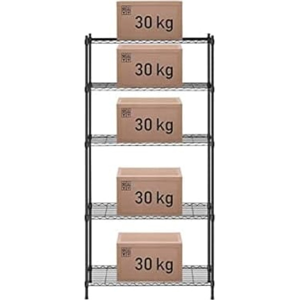 Royal Catering 5-ярусный металлический стеллаж Проволочные полки Безболтовые кухонные полки Черная эпоксидная отделка RCMR-1800P19B (5 полок, общая вме