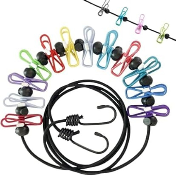 ZNDFTW Reise-Wäscheleine, tragbare Wäscheleine mit 12 Kleiderklammern, für den Innenbereich und Outdoor-Camping, Schwarz