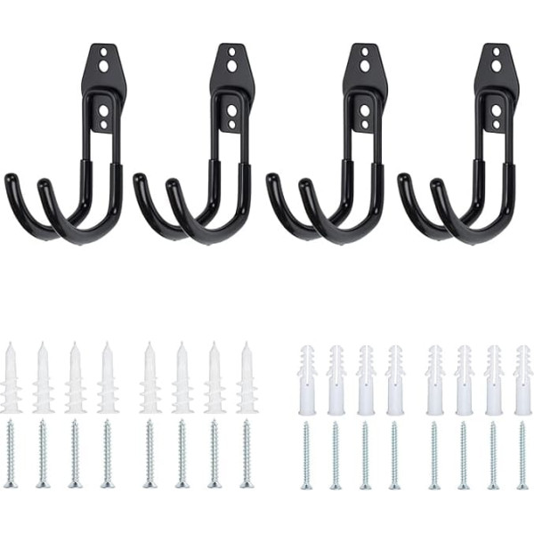 FLYAMAPIRIT Крючки для хранения в гараже, тяжелые железные настенные крепления, двойные крючки, держатель для приборов, 4 настенных крепления дл