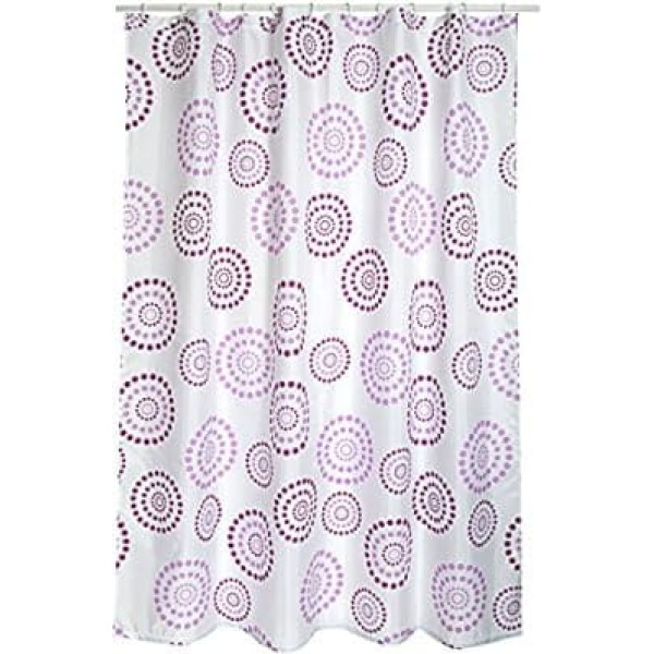 Текстильная штора для душа MSV Cotexsa by Premium Schimmel, антибактериальная, моющаяся, 100% водонепроницаемая, с 12 кольцами из полиэстера, "Dots" Purple/Purple, 180 x
