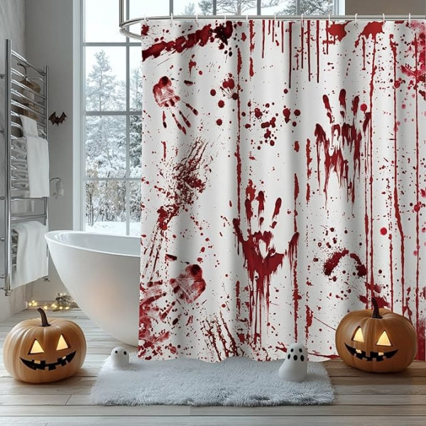 AIBIIN Halloween Shower Curtain Horror Red Splash Bloody Bath Curtains Bathtub Decoration Durable Polyester Material with 12 Hooks 180x180cm