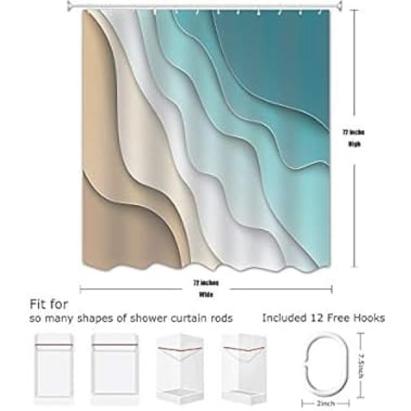 Бирюзовый Коричневый Крем Геометрические Градиент Полоса Темно-бирюзовый Душ Занавес Комплект с Крючками Ванная Шторы Водонепроницаемый