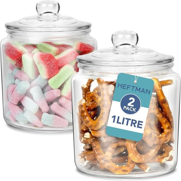 HEFTMAN Стеклянная банка с крышкой 1 литр - Прозрачные пустые банки для конфет с герметичной крышкой - Винтажные аптекарские банки для сладосте