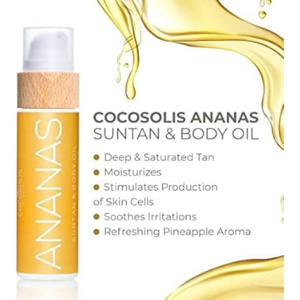 COCOSOLIS Pineapple Tanning Accelerator - Органическое масло для загара с витамином Е и ароматом ананаса для быстрого интенсивного загара - Усилитель загара