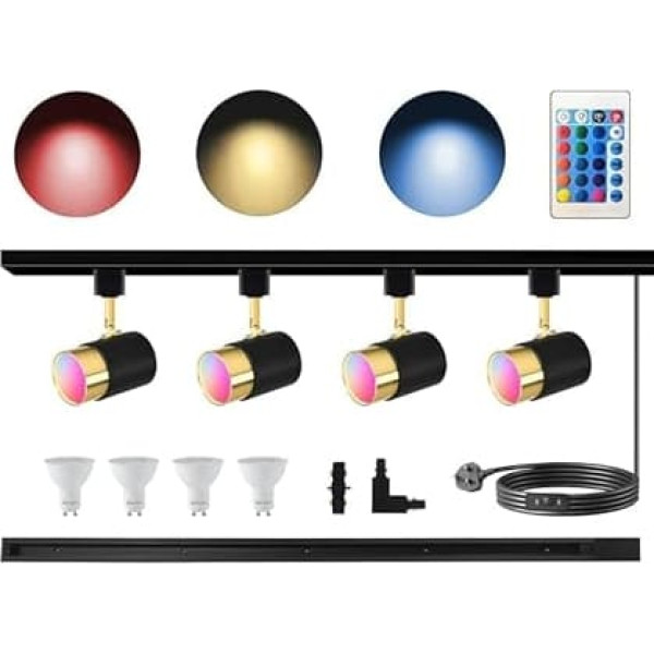 Bravsekai GU10 RGB LED Track Lighting Set with 4 Colour Changing Bulbs and 1M H Power Rail, IR Remote Control, Luxury and Modern Stylish Ceiling Spotlight Light