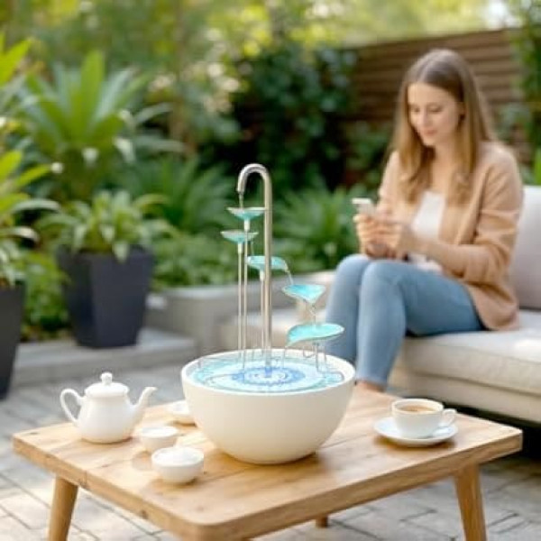 Каскад листьев HYDRIA Verdigris, мозаика Verdigris, фарфоровая чаша в комплекте, до 100 часов работы на одной зарядке, зарядка от USB, использование на улиц