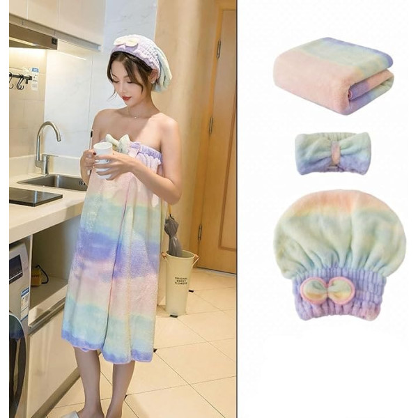YMSHOPE Damen Rainbow Body Wrap Quick Dry Hair Cap Set (Lila)