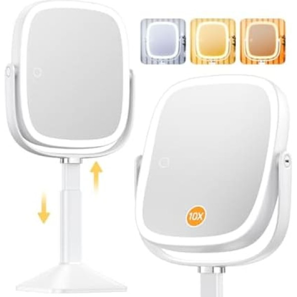 Gospire Прямоугольное зеркало для макияжа с подсветкой 3 цветов, регулируемое по высоте зеркало для рабочего стола, 1X/10X увеличивающее зеркало