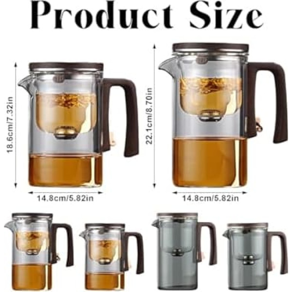 Enchantipot Glass Teapot with Infuser, Magic Water Separation Teapot, Wooden Handle, Heat Resistant Borosilicate Glass, with Strainer (700 ml, Grey)