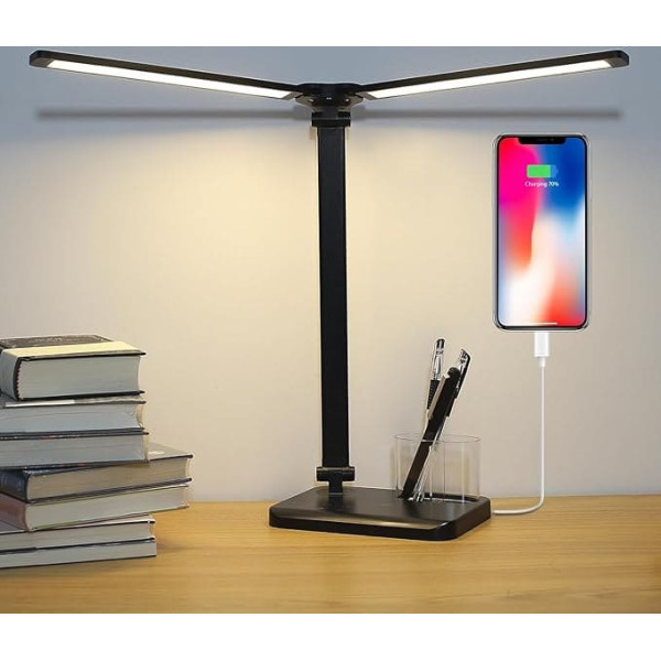 Настольная лампа iVict Dual Swing Arm LED, 5 режимов сенсорного управления уровнями яркости с 45-минутным таймером автоотключения, USB-порт для зарядки,
