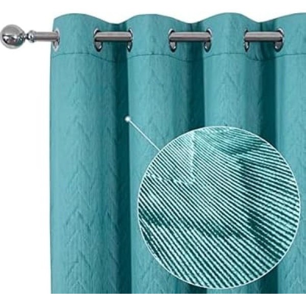 always4u 100% непрозрачная штора с узором Blackout Eyelet Curtain Защита от холода Теплоизоляционные шторы для спальни гостиной 245 x 140 см, бирюзовый, компле