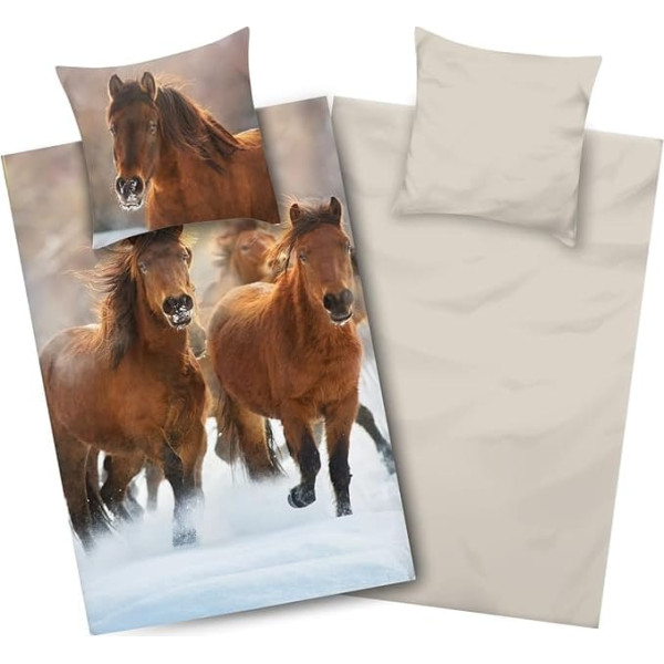Aminata дети Фланель Постельное белье 135 х 200 см лошадь животные мотив девочек детский двусторонний комплект постельного белья хлопок коричне