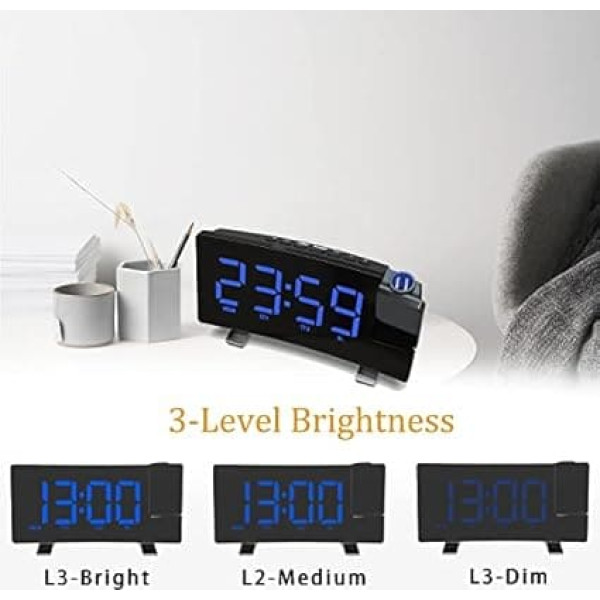 Проекционный будильник VORRINC, цифровой будильник, радио-будильник с проекцией на 180°, подключение USB, двойной будильник, повтор 12/24H, 3 проекци