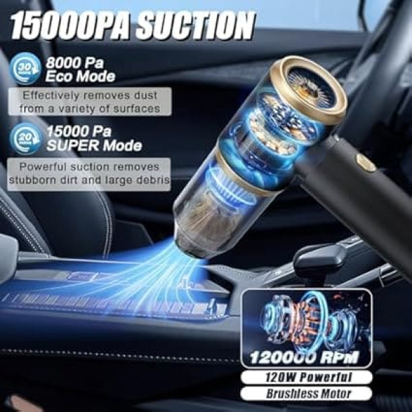 NIWOHOM ручной пылесос, 15000Pa ручной пылесос аккумулятор беспроводной, 4 в 1 мощный автомобильный пылесос сильный с моющимся HEPA фильтр без мешка