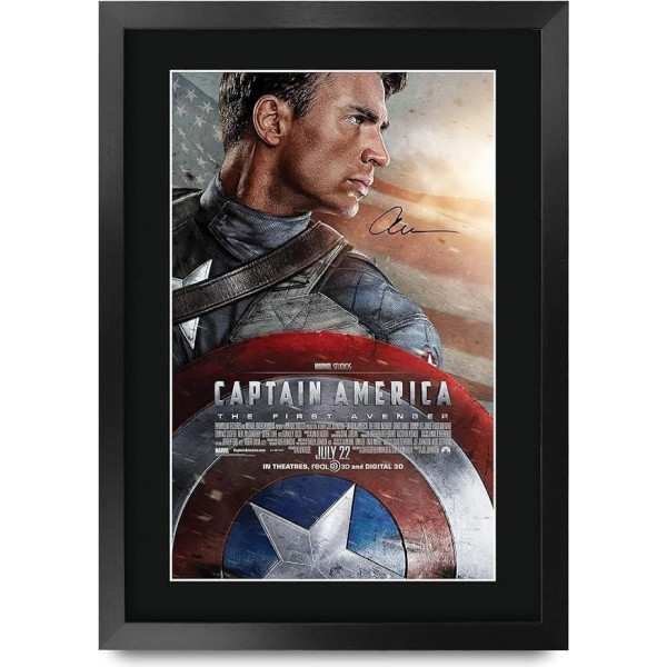 HWC Trading Captain America A3 Framed Signed Printed Autographs Picture Print Photo Display Gift For Chris Evans Movie Poster Fans