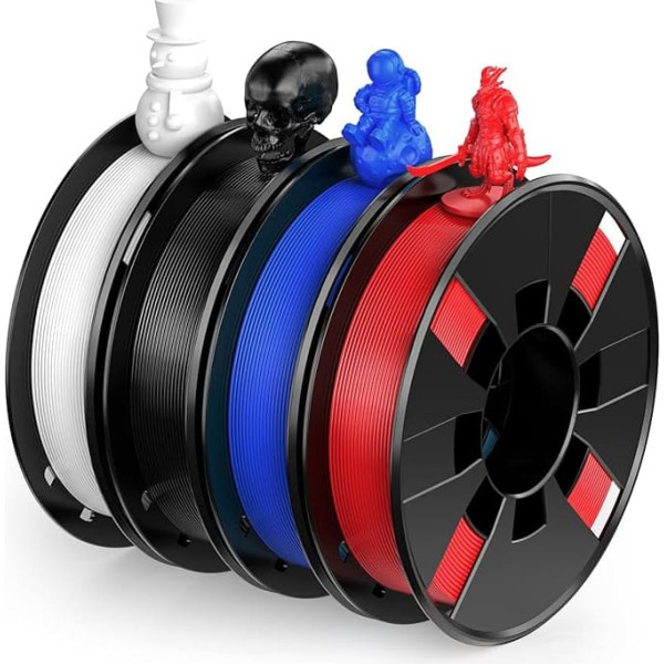 ENTINA PLA Filament Set for 3D Printers, PLA Filament 1.75 mm, 1 kg (250 g x 4 Spools), Black, White, Red and Blue PLA Filaments, Dimensional Accuracy +/- 0.02 mm