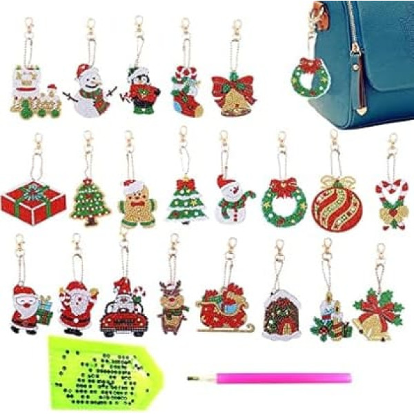 Stronrive Diamond Art Christmas Keychains - 5D Christmas Diamond Art Ornaments, 21 Pieces Christmas Decorative Hanging Ornaments For Crafts For Christmas Decor