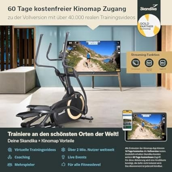 Skandika кросс-тренажер Carbon P25 / P25-G | велотренажер, складной, с/без генератора, до 150 кг, 32 уровня, совместимость с приложениями Bluetooth, эллиптическ