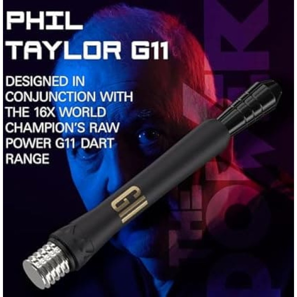 Target Darts Phil Taylor Gen 11 Power 9-Five Shafts, Raw Power Titanium Dart Shafts Pack of 3 | Phil Taylor G11 Black Shaft Set, профессиональные аксессуары для дартса - короткая/средняя/средняя д