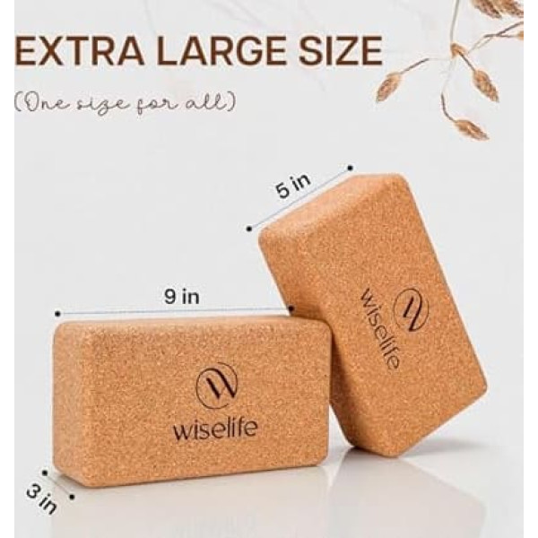 Пробковый блок для йоги WiseLife, комплект из 2 штук, очень большой, высокоплотный пробковый материал премиум-класса, устойчивый к запахам, мягк