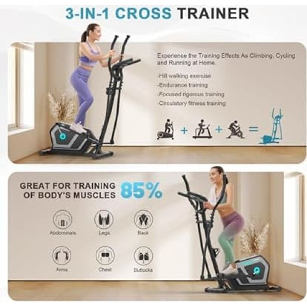 Кросс-тренажер для дома, 3-в-1 кросс-тренажер с 16 уровнями сопротивления, ЖК-монитор, держатель для бутылки с водой и устройства, маховик 6 кг,