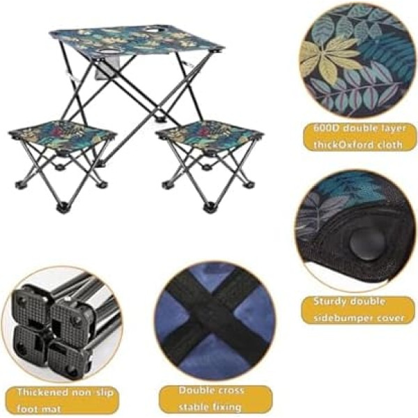 Складной кемпинговый стол SNZ с 2 складными табуретами - складной кемпинговый стол из оксфордского нейлона для улицы, сада, рыбалки, кемпинга