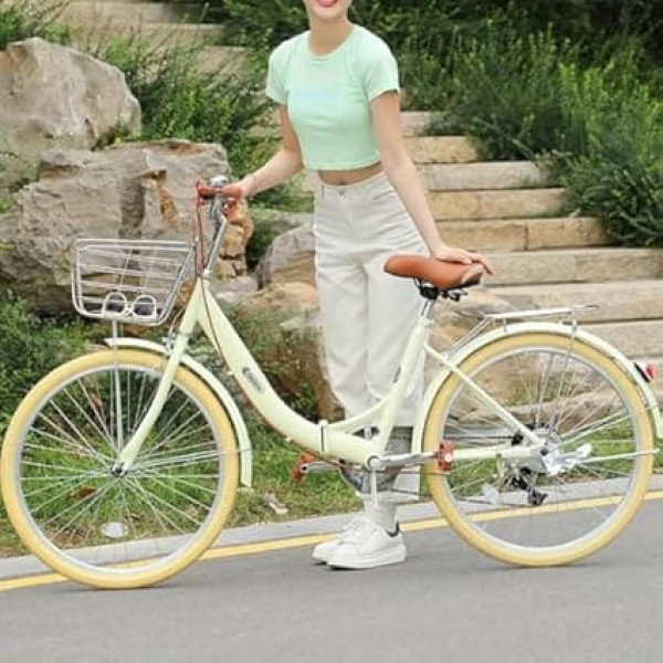 Складной велосипед для взрослых и женщин, 6-скоростной гибридный велосипед, передний и задний тормоза, пригородный велосипед с задним бага