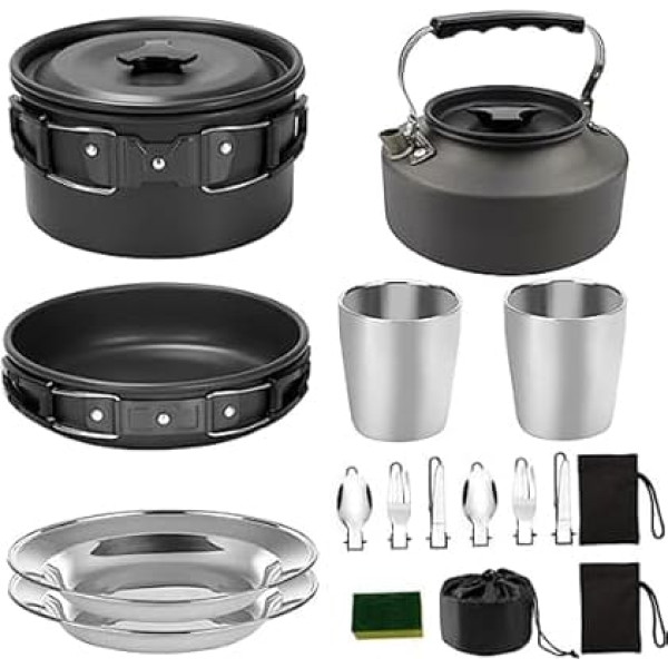 WOONEKY 1 набор посуды для кемпинга кастрюли походное оборудование для приготовления пищи кастрюля для наружной посуды комплект пикник посуд