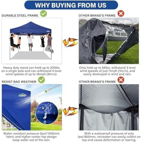 Cobizi Беседка 3 x 3 Водонепроницаемая Стабильная Зимостойкая с боковой стеной и мешком для песка, Всплывающая Складная Беседка Вечеринка Пала