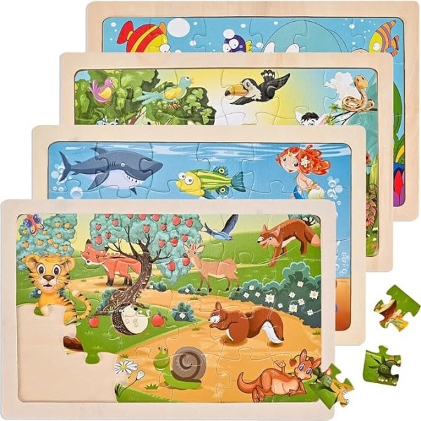 Wooderma Пазл Животные от 3 4 5 лет, 4 х 24 шт. деревянные пазлы для детей, детские пазлы деревянные пазлы детская игрушка, дошкольная образовательн