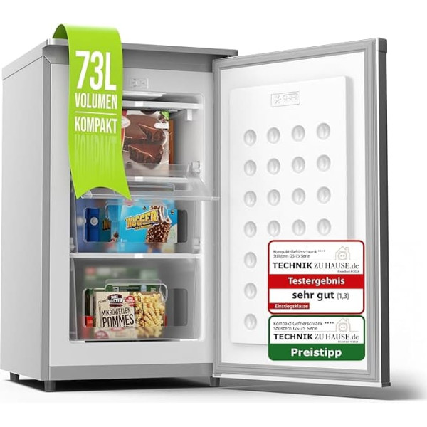 ‎Stillstern Морозильник Stillstern E (73 л) 4 звезды -18°C, низкое энергопотребление, 3 отделения, плавная регулировка температуры, сменные дверные петли,