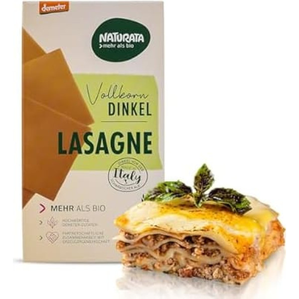 Naturata Organic Spelt Whole Grain Lasagna Plates, 250 г, полба Деметра из Швабского Альба, тонкий ореховый вкус для лазаньи и запеканок