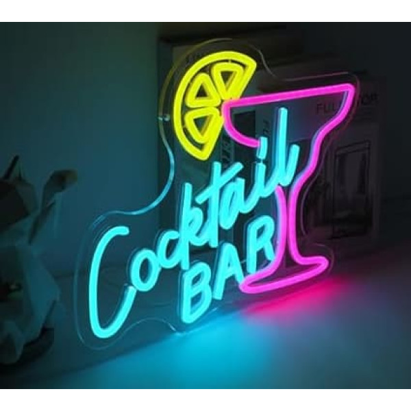 DWOOKE Коктейль бар неоновый знак, коктейль стекло, светодиодная неоновая подсветка для дома и паба, диммируемый, USB питание неоновый бар знак