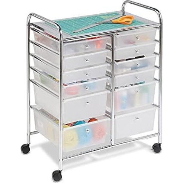 Двойная тележка для хранения Bakaji из хромированного металла с 12 ящиками белого цвета и 4 колесами 39 x 60 x 76 см
