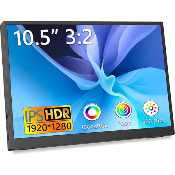 Kyyivwine 10,5 дюймов Портативный монитор 1920 x 1280 3:2 Мини-экран 500 нит высокая яркость + 2000:1 контрастность Ультратонкий корпус с подставкой 45° Двой