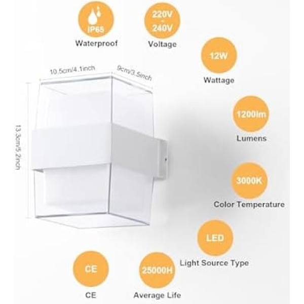 VivaLet LED Wall Light 12 W Indoor/Outdoor IP65 Wall Lamp Outdoor Lamp Wall Aluminium 1200 LM 3000 K Up and Down Wall Lighting Outdoor Wall Light for Living Room House Wall Bathroom Hallway White Pack