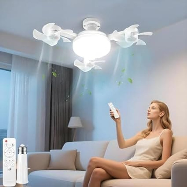Потолочный светодиодный светильник в цоколе E27 с вентилятором, маленький вентилятор с лампой, потолочный вентилятор с подсветкой, 3 головк