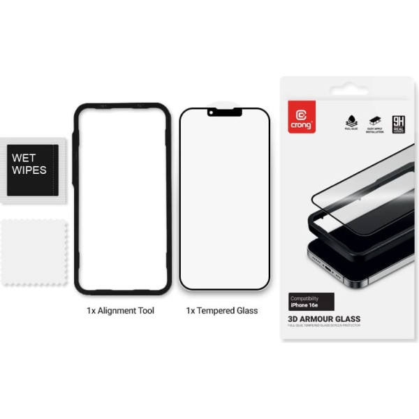 Crong 3d бронестекло - iphone 16e / iphone 14 / iphone 13 / iphone 13 pro + установочная рамка