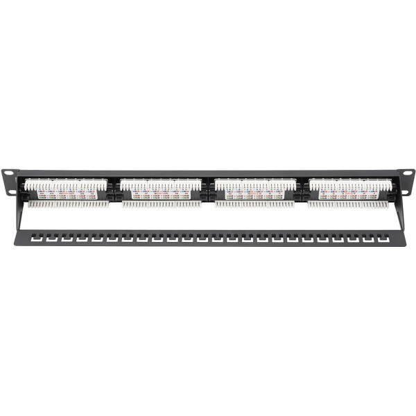 Патч-панель 19" 24 порта, кат.6, u/utp, 1u, кабельный кронштейн, черная (в комплекте)