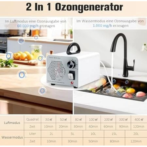 2-в-1 Генератор озона 60,000 мг/час, озоновый прибор, озоновый очиститель воздуха с режимом воды и воздуха, нейтрализатор запахов O3, генератор о