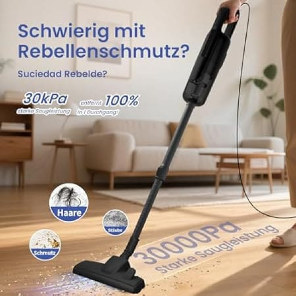 Пылесос VersLife C8PRO с кабелем, 30000Pa/600W ручной пылесос с кабелем, 6 в 1 ручной пылесос с кабелем 5 м, легкий и тихий, удлиняемый шланг для твердых по