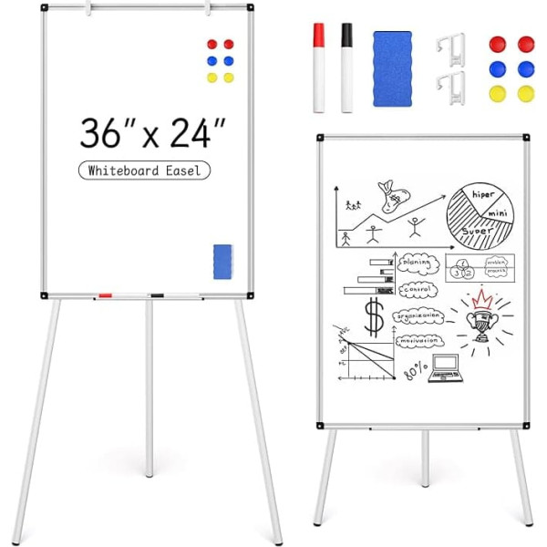 Магнитная доска с подставкой для мольберта Dry Erase 36 "x24" Whiteboard with Height Adjustable Tripod Stand 36 "x2.36" Flipchart Easel Stand Display Board 6 Magnets 1