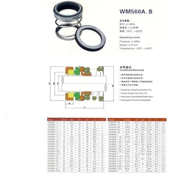 BQSLUMLZU Hardware-Armaturen SiC-G-FKM 560-12/14/15/16/17/18/19/20/22/25/28/30/32/35/38-60mm Mechanische Wellendichtung Einzelfeder for Wasserpumpe Mechanische Dichtung(45mm)