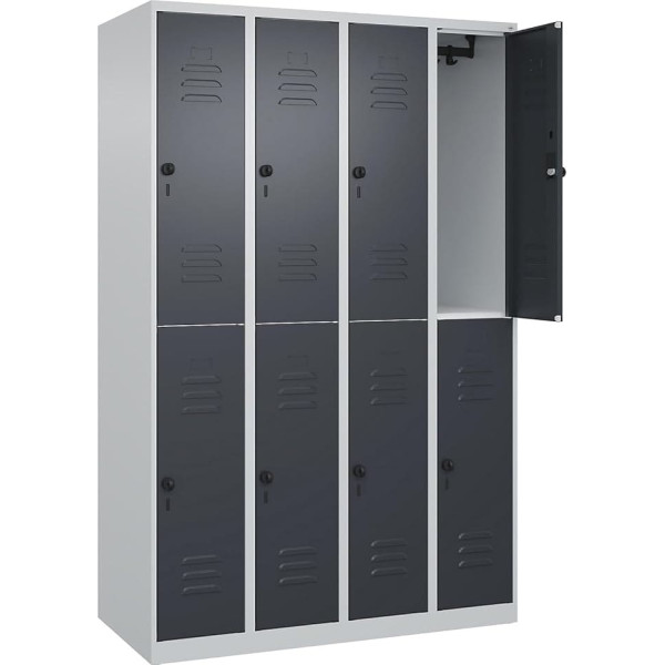 C+P | Doppelstock-Spind Classic Plus | 4 Abteile | lichtgrau/grau | HxB 1850 x 1200 mm | mit Bodengleitern | Drehriegel