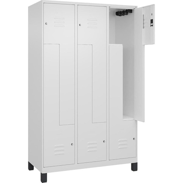 C + P Möbelsysteme C+P | Z-Spind Classic Plus | 3 Abteile | verkehrsweiß | B 1200 мм | mit Füßen | Zylinderschloss