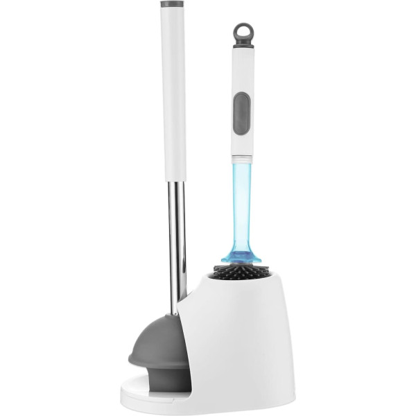 ToiletBuddies Toilet Brush & Plunger Set - Щетка для туалета и держатель, многоразовая щетка с дозатором для жидкости - 2 в 1 силиконовая туалетная щетка и набо