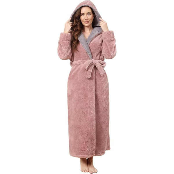 Hellomamma Длинный халат с капюшоном для женщин Роскошные Фланель Флис Полная Длина Зима Теплая Пижамы Душ Рубашка Розовый XL Розовый XL Розовый X