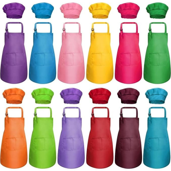 Набор фартуков для детей из 12 предметов с поварской шляпой - регулируемый кухонный фартук с 2 карманами для мальчиков и девочек - фартуки дл