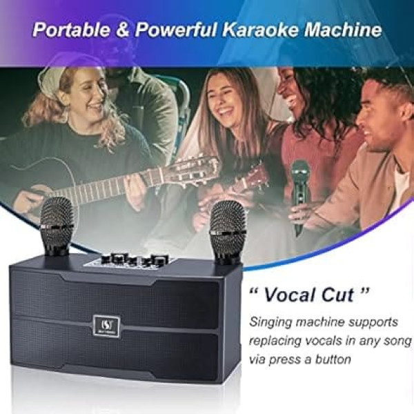 Караоке-машина для взрослых и детей, портативная караоке-система Bluetooth с 2 беспроводными микрофонами, акустическая система PA для вечеринок,